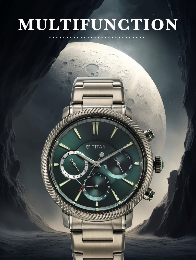 Titan Opulent III Blue Dial Multi Stainless Steel Strap watch for Men 90127KM02