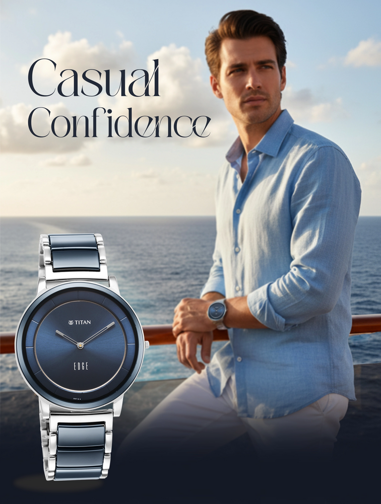Titan Edge Murals Quartz Analog Blue Dial Stainless Watch For Men 1843SM03