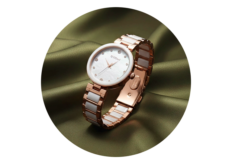 Titan Raga Showstopper Quartz Alog Mother Of Pearl Dial Metal Strap Watch for Women